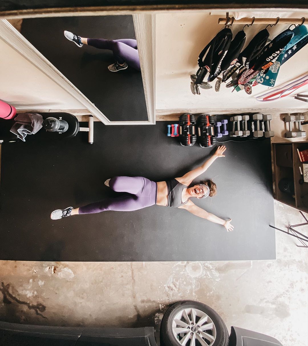35 square feet of training surface. Wide enough for lateral shuffles, jumping jacks, and lateral bounds without stepping off the edge. Long enough for burpees and full-body drills. Large enough for bear crawls without running out of mat. It fits in a living room without pushing furniture to the walls, and it gives you enough ground for a complete P90X or Insanity session without modification. Most daily trainers never need anything bigger. Most homes can accommodate this without rearranging a single thing.